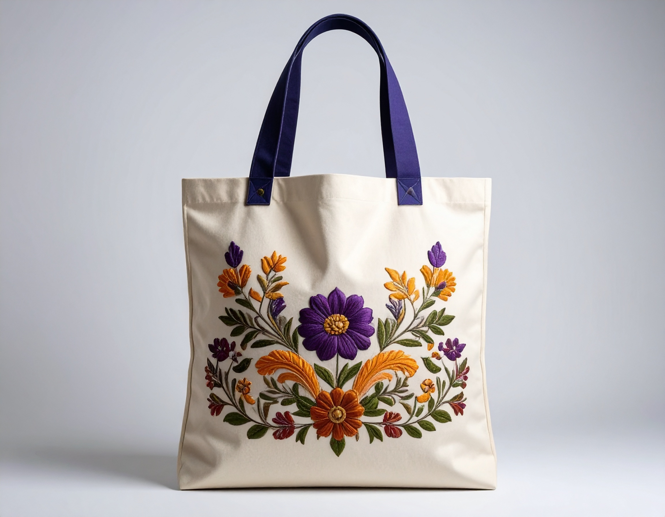 市場の一角、カラフルなファブリック小物を扱う屋台で見つけたのは、まさに「ラインダンスの配色」のトートバッグ。